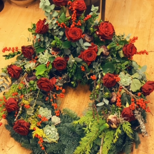 Vi tilbyder et bredt udvalg af begravelsesbinderi – fra kistepynt og kranse til bårebuketter og hjerteformede dekorationer. Hver opgave bliver løst med respekt, ro og forståelse for den svære stund.